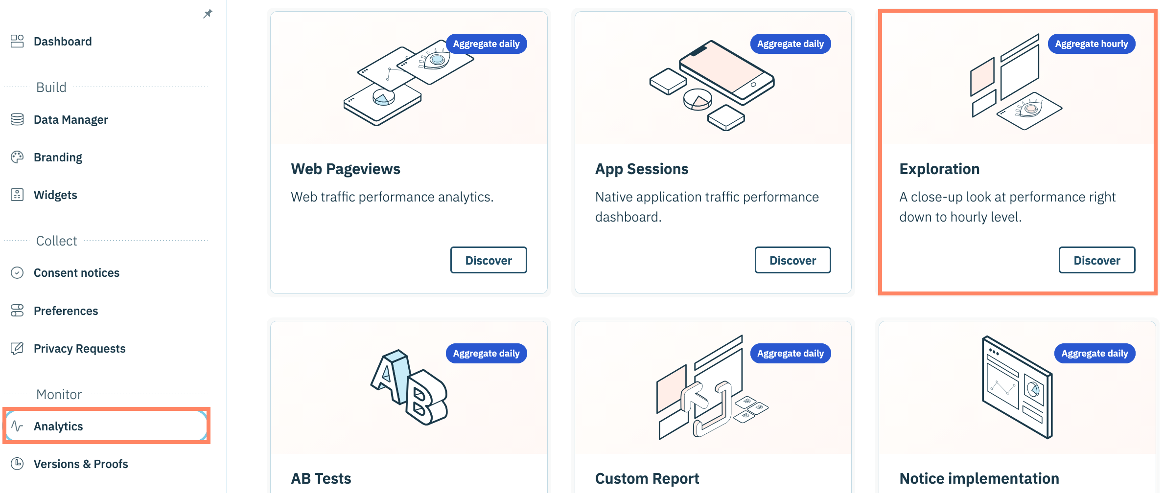 Pour commencer, cliquez **Analytics** dans le panneau de gauche et sélectionnez la **Exploration** carte sur la page suivante.
