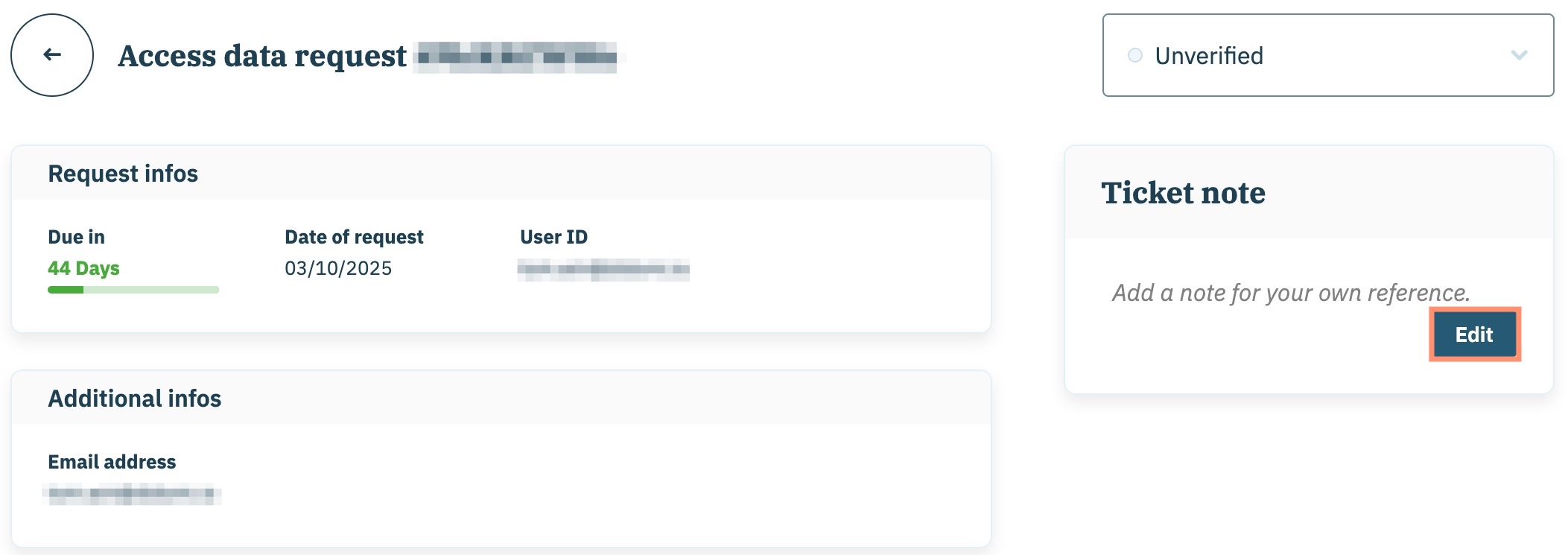 Accédez au **Note du ticket** panneau et cliquez sur **Modifier**.