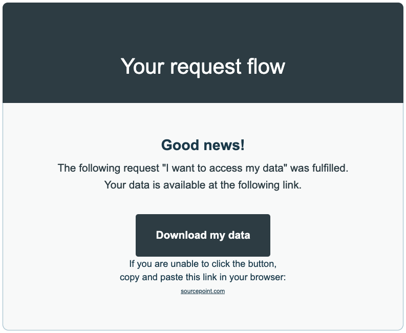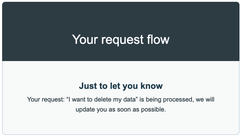 Didomi générera automatiquement un e-mail à l'utilisateur final lorsqu'une DSAR est soumise pour la première fois ou lorsque le statut de leur ticket de demande utilisateur est déplacé vers certains statuts.&#x20;