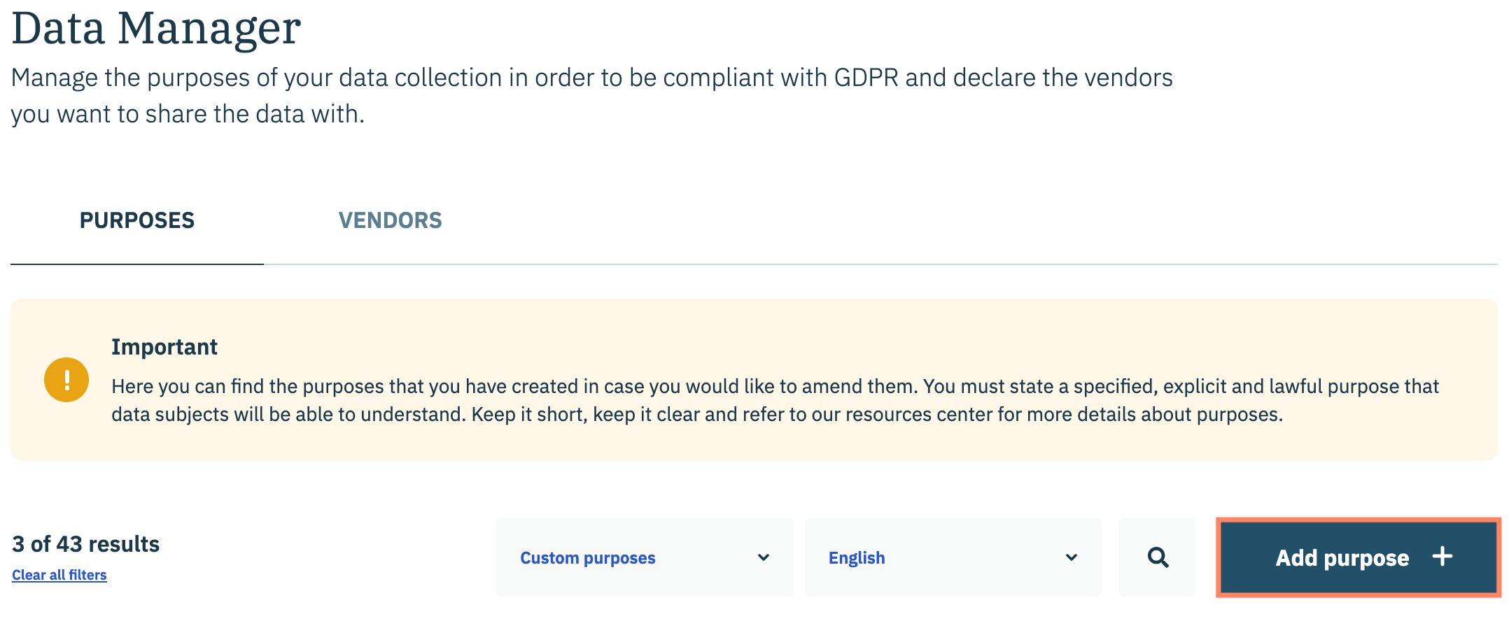 Dans cet article, nous expliquerons comment créer et configurer une nouvelle finalité personnalisée via le Data Manager.
