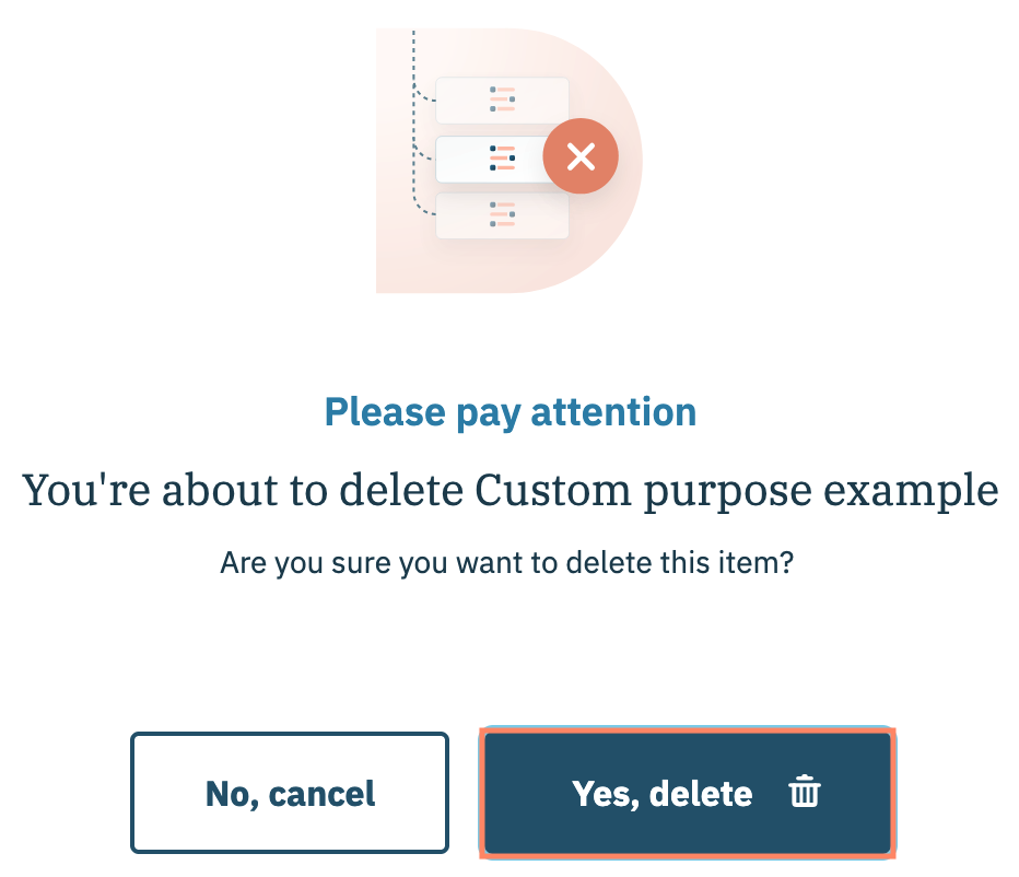 Confirmez la décision de supprimer l'objectif personnalisé dans la fenêtre modale suivante et cliquez sur **Oui, supprimer**.
