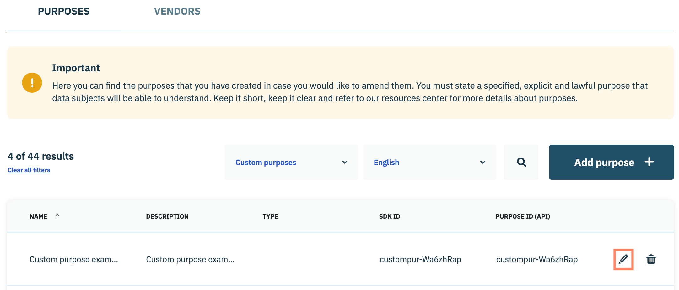 # Supprimer la finalité personnalisée