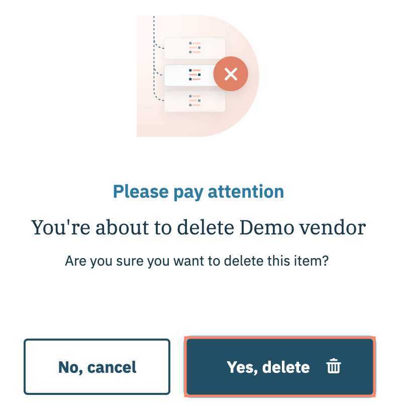 Confirmez la décision dans la fenêtre modale suivante et cliquez sur **Oui, supprimer**.