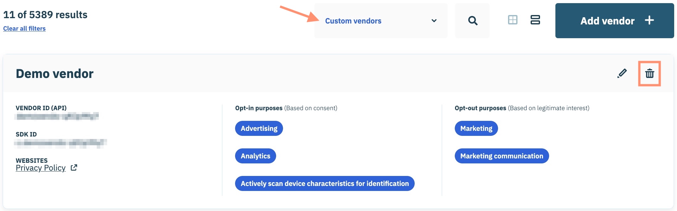 Le fournisseur personnalisé sera retiré du compte Didomi de votre organisation.