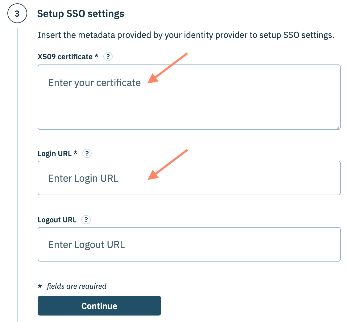 Utilisez les champs fournis dans **Obtenez vos identifiants SAML SSO** pour noter les éléments suivants :