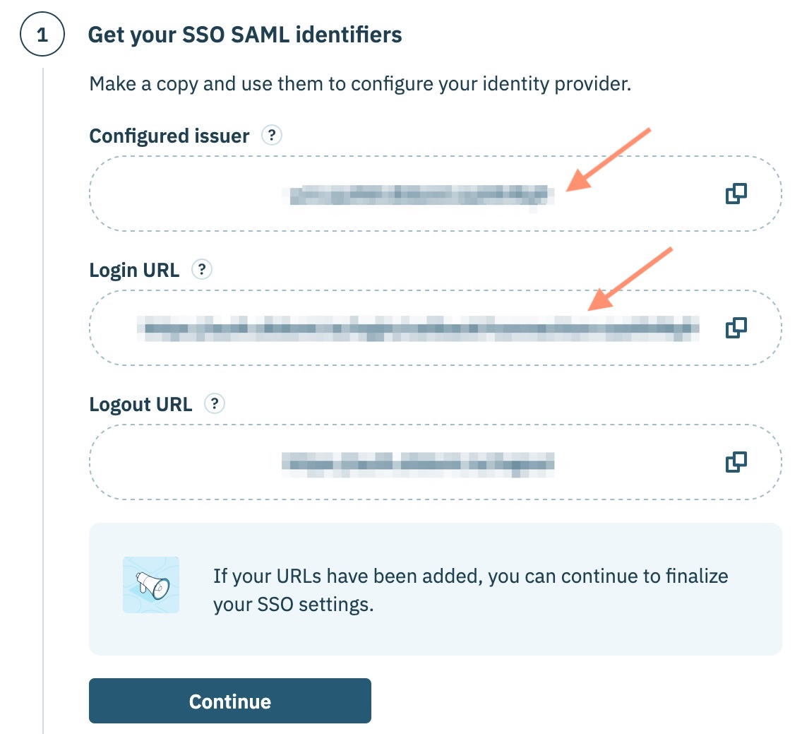 Utilisez les champs fournis dans le **Récupérez vos identifiants SAML SSO** étape pour enregistrer les éléments suivants :