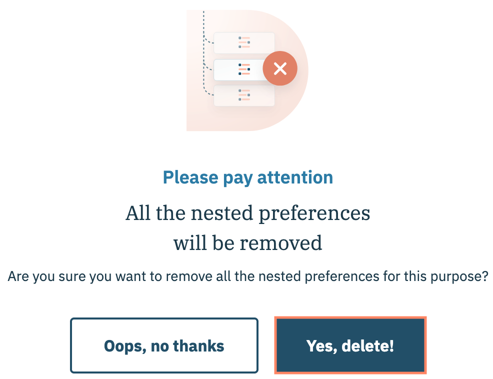 Confirmez votre décision de réinitialiser l'objectif dans votre arborescence de configuration PMP dans la fenêtre modale et **cliquez sur Yes, delete!**