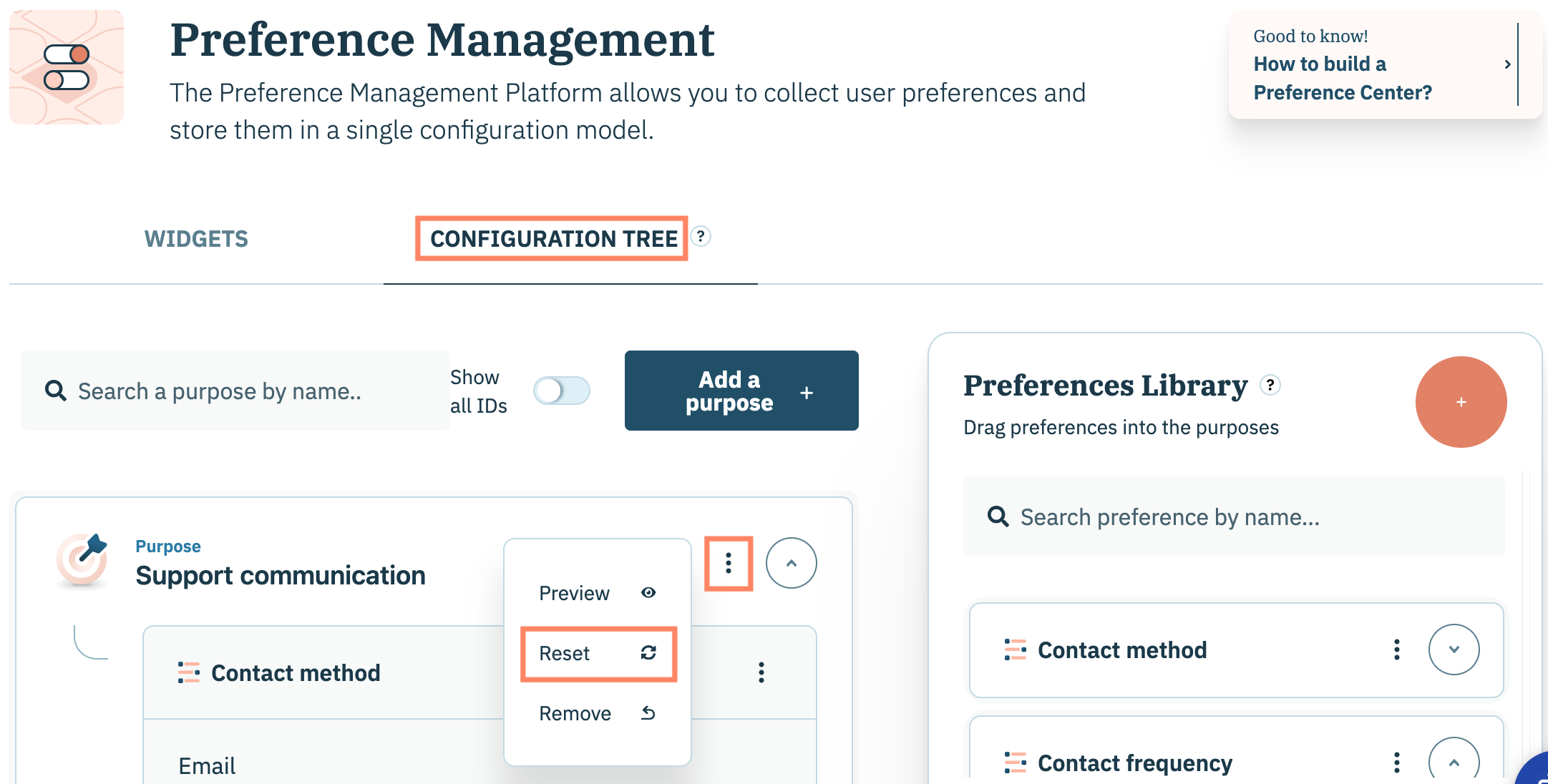 La réinitialisation d'un objectif dans votre arborescence de configuration PMP supprimera toutes les préférences (et sous-préférences) de l'objectif. L'objectif restera dans votre arborescence de configuration.&#x20;