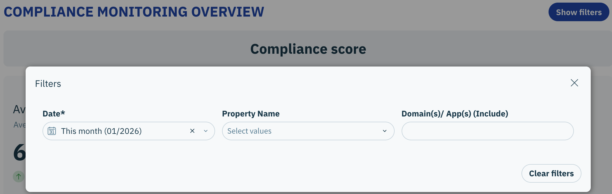 [Cliquez ici](https://docs.didomi.io/moIvfcA7NSpjmwGZ7dzv/fr/surveillance-avancee-de-la-conformite-acm/analytique-de-la-surveillance-avancee-de-la-conformite-acm/filtres-du-tableau-de-bord-acm) pour plus d'informations sur chaque filtre disponible.